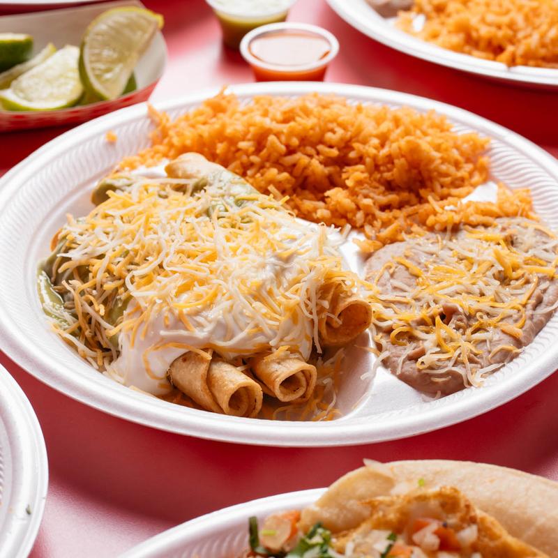 Cheddar cheese in 2 corn tortillas topped with our homemade red enchilada sauce.
